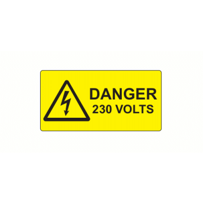 50 x 25mm Polypropylene Label "Danger 230 Volts".