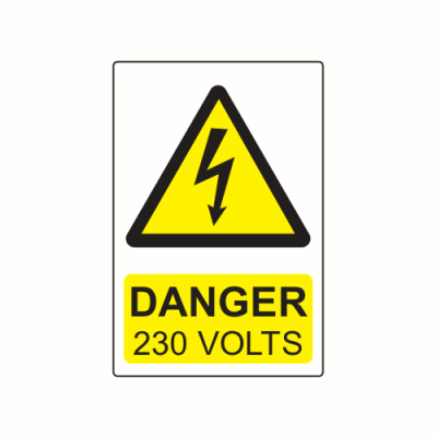 75 x 50mm Polypropylene Label "Danger 230 Volts".