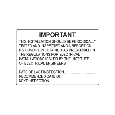 75 x 50mm Polypropylene Label "Inspect Installation".