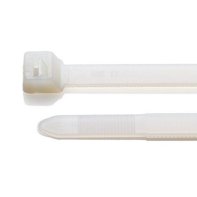 200mm x 4.8mm natural cable ties, pack of 100 One-piece moulded nylon non-releasable cable tie..
