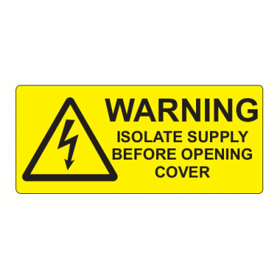 80 x 35mm Engraved Label "Warning Isolate Supply Before Opening Cover".