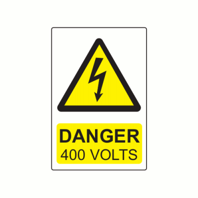 75 x 50mm Polypropylene Label "Danger 400 Volts".