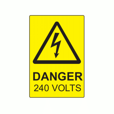 75 x 50mm Polypropylene Label "Danger 240 Volts".