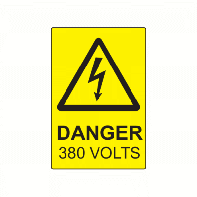 75 x 50mm Polypropylene Label "Danger 380 Volts".