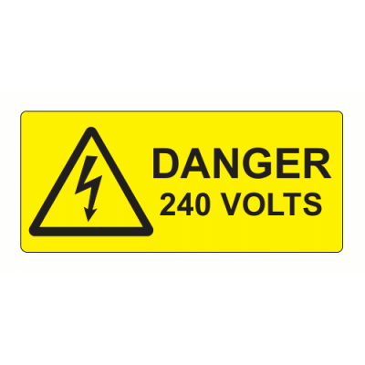 80 x 35mm Polypropylene Label "Danger 240 Volts".