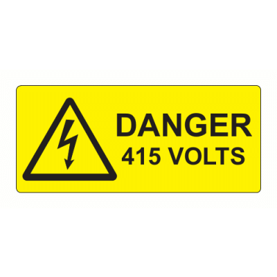 80 x 35mm Polypropylene Label "Danger 415 Volts".