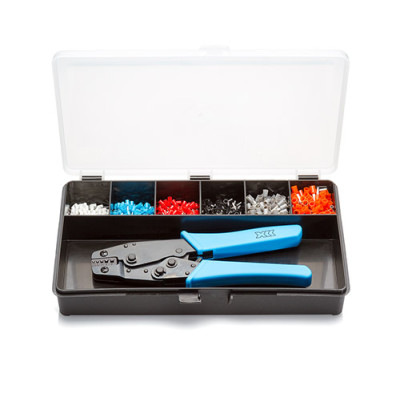 7 Compartment cord end ferrule kit including crimp tool.