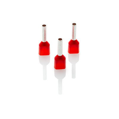 1.0mm² Long Twin Cord End Ferrule, Red (French & DIN colours), Pack of 100.